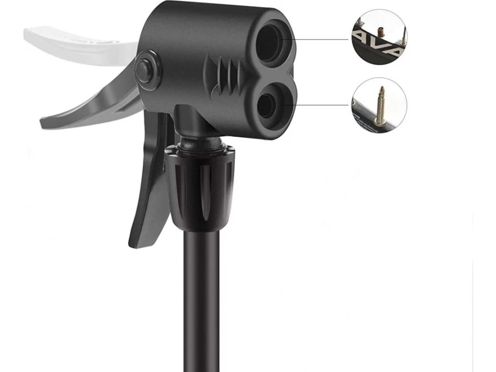 - Má širokou kompatibilitu . Dvojitá hlavice s vestavěným zámkem umožňuje snadné nafouknutí cyklistických pneumatik, míčů a matrací.