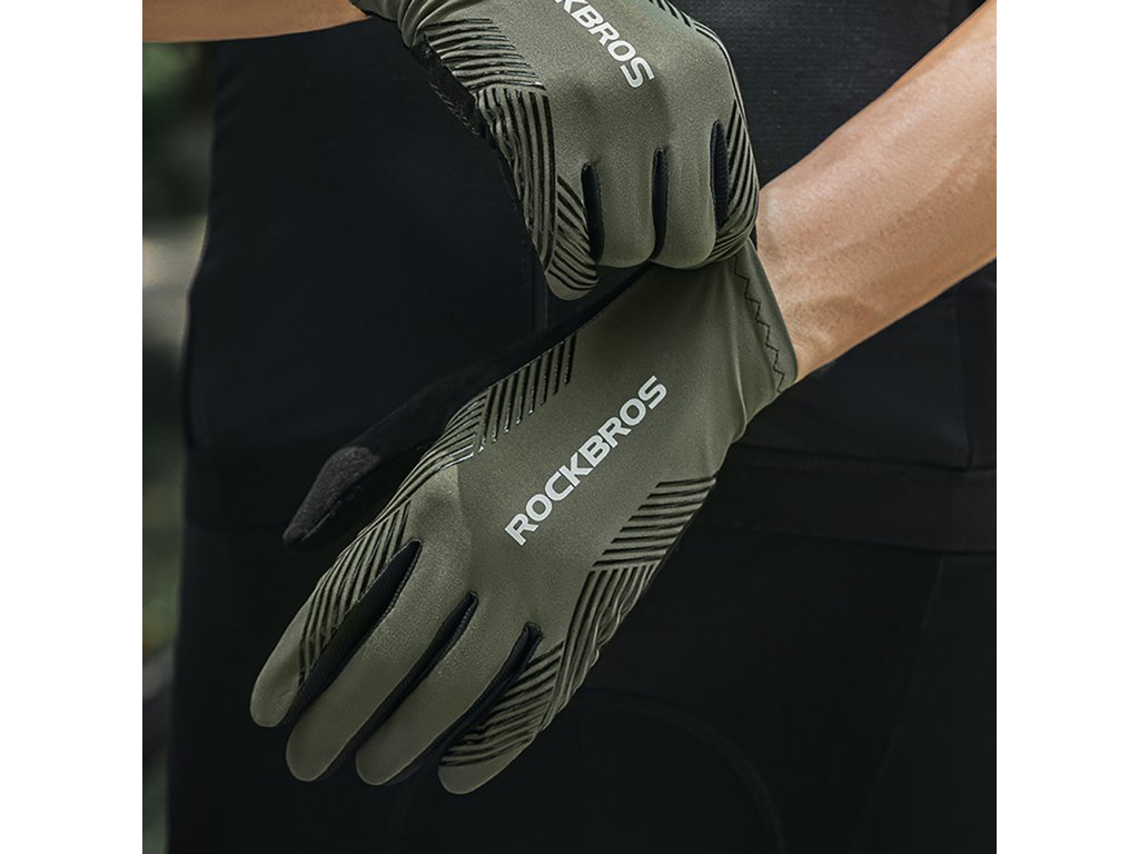 Cyklistické rukavice Rockbros jar/leto/jeseň, plné, veľkosť: M - zelené