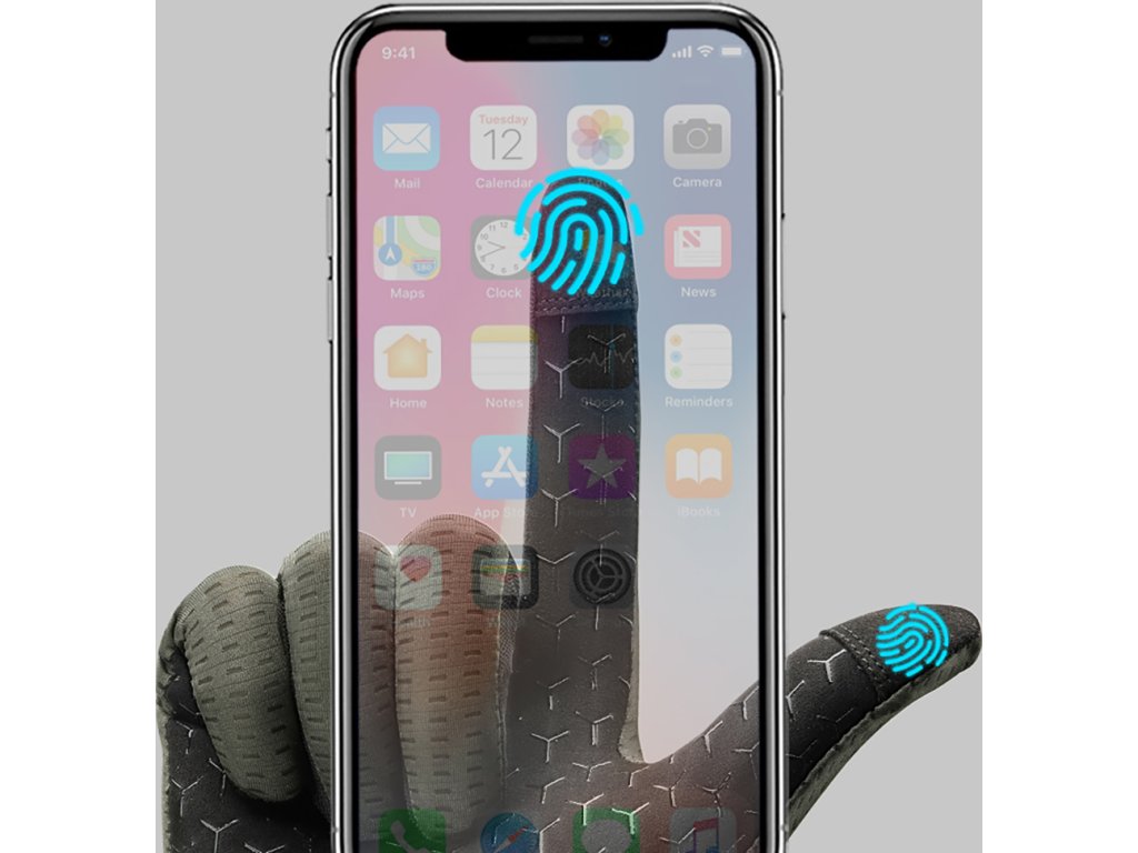 - Podpora dotykové obrazovky: Dva prsty vybavené vodivou tkaninou umožňují pohodlné používání smartphonu nebo navigace.