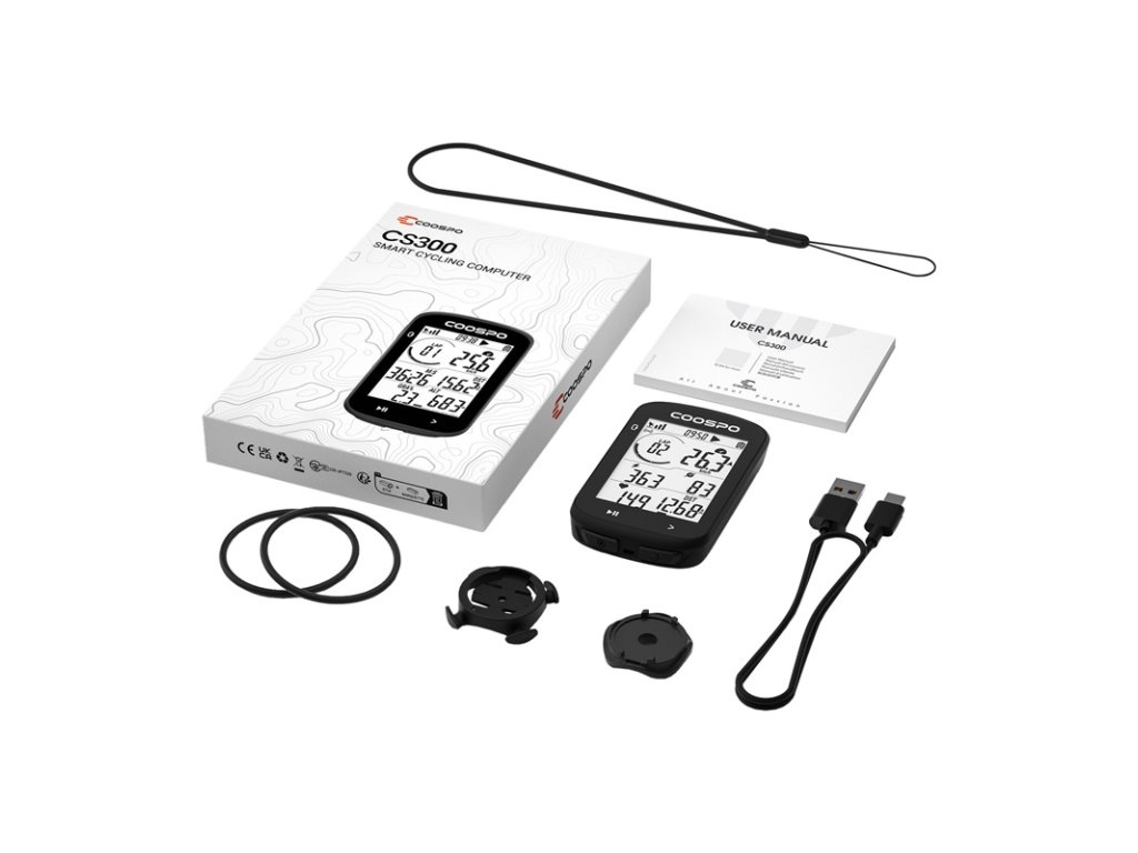 CS300 podporuje připojení Bluetooth 5.0 a ANT+, takže jej můžete snadno propojit se snímači rychlosti, tepové frekvence, kadence nebo měřičem výkonu. Kompatibilita s aplikací CoospoRide umožňuje snadnou správu nastavení a synchronizaci výsledků s oblíbenými platformami, jako jsou Strava a TrainingPeaks. Baterie s kapacitou 1 000 mAh poskytuje až 40 hodin provozu a port USB-C umožňuje rychlé nabíjení, takže se můžete soustředit výhradně na trasu.