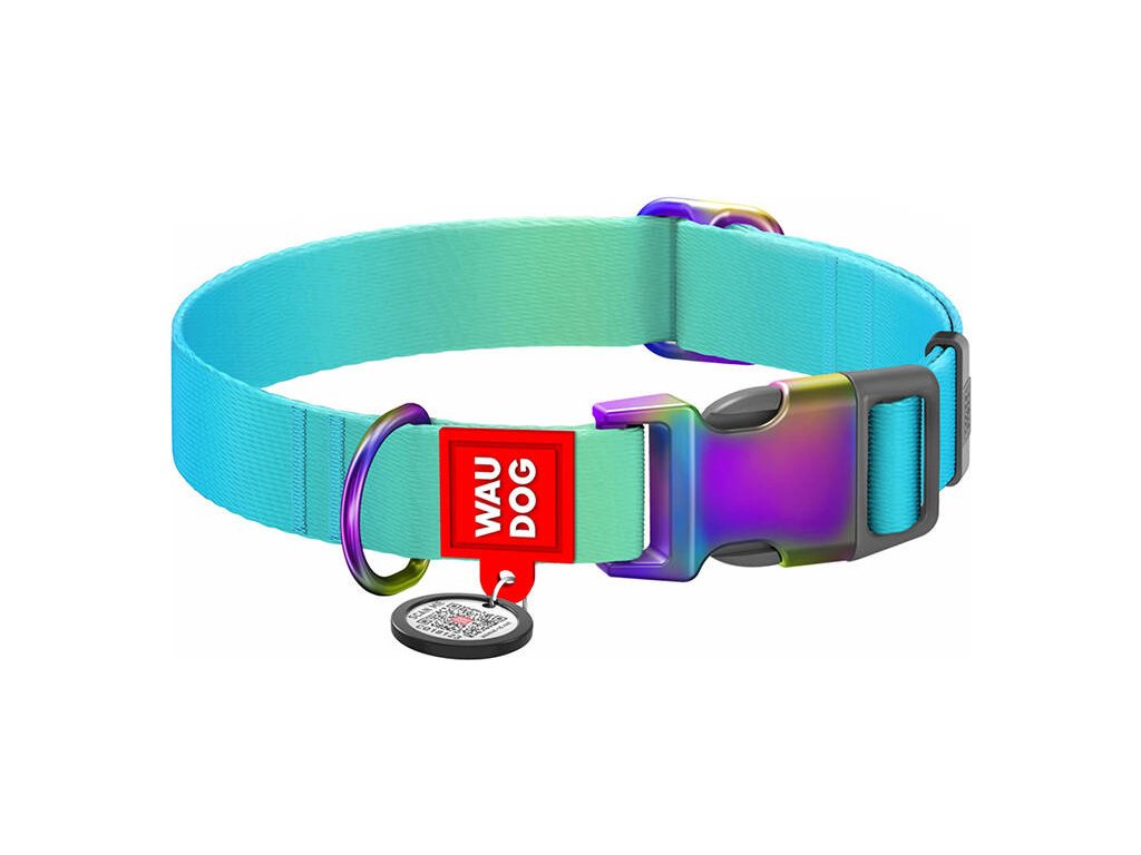 Nylonový obojek pro psa s QR kódem WAUDOG 15 mm široký, 25-35 cm dlouhý modrý