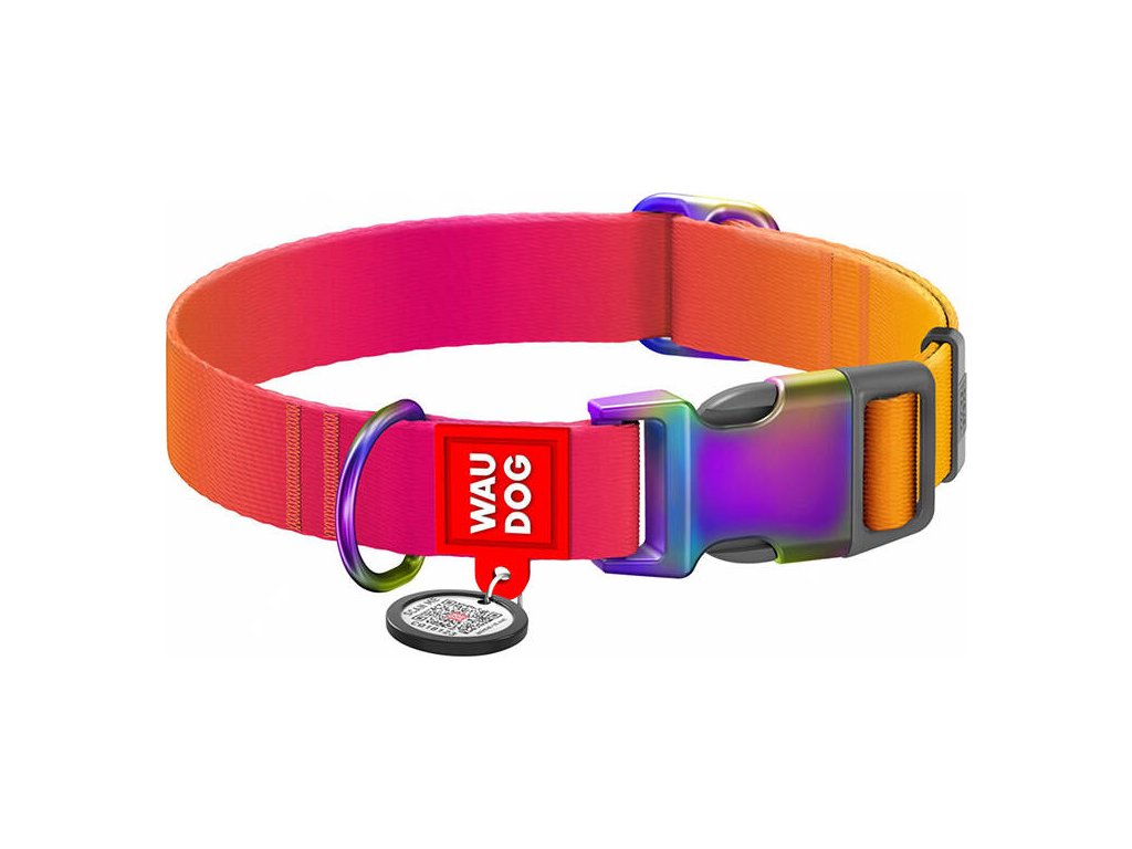 Nylonový obojek pro psa s QR kódem WAUDOG 15 mm široký, 25-35 cm dlouhý (oranžový).