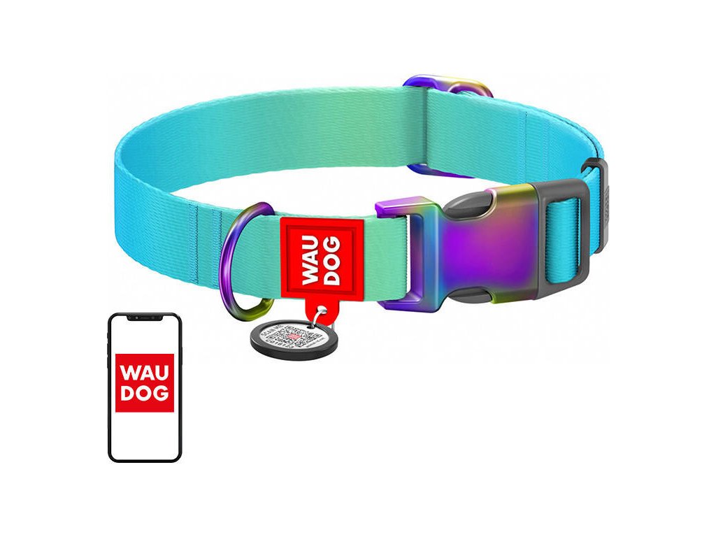 Nylonový obojek s QR kódem pro psa s přechodem Waudog, modrý, velikost XL