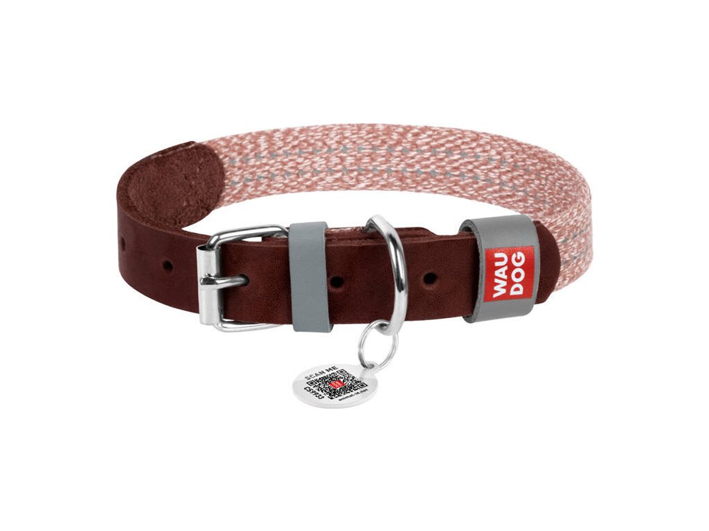 Obojek pro psa z přírodní kůže a recyklovaného materiálu s QR kódem Waudog vel. L, šířka 25 mm (hnědý).