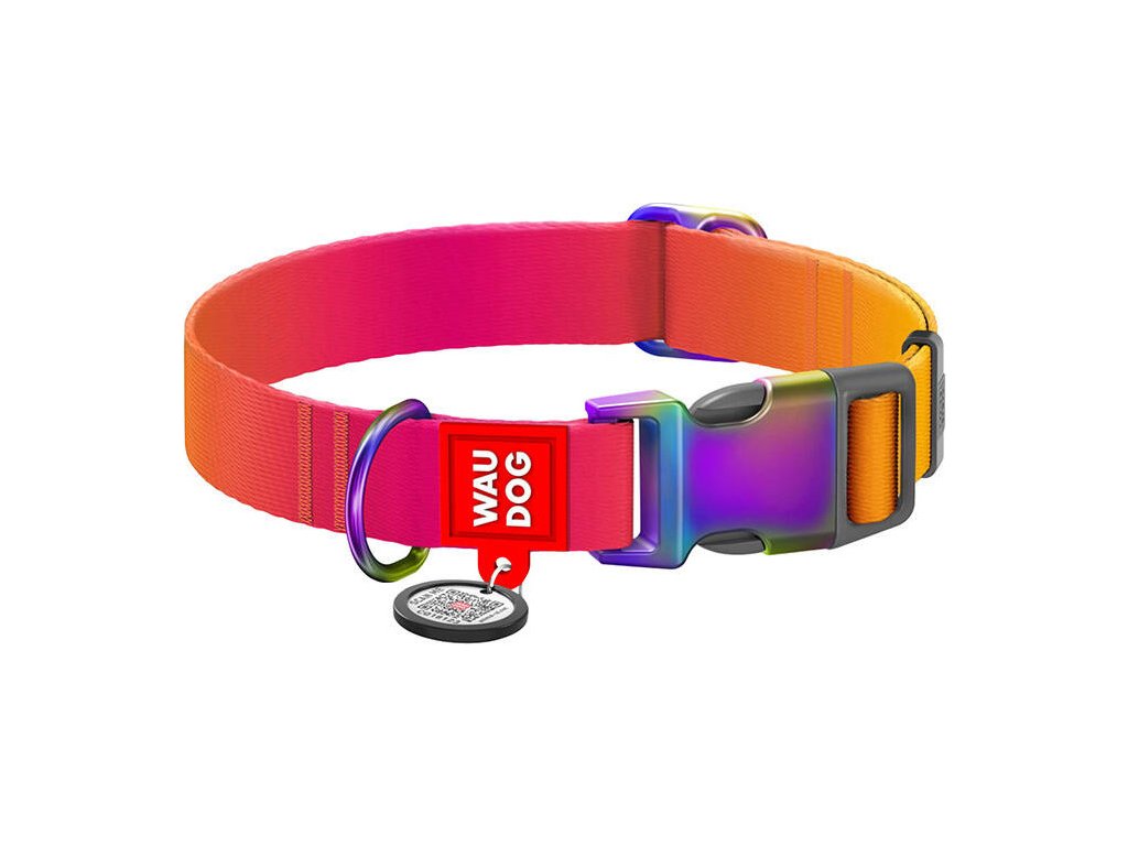 Nylonový obojek s QR kódem pro psa Waudog gradient velikosti M (oranžový).