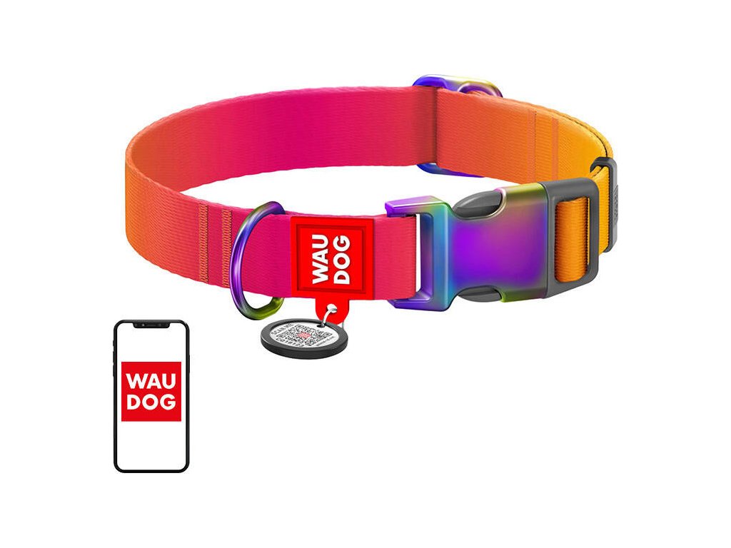 Nylonový obojok s QR kódom pre psa Waudog gradient veľkosti M (oranžový).