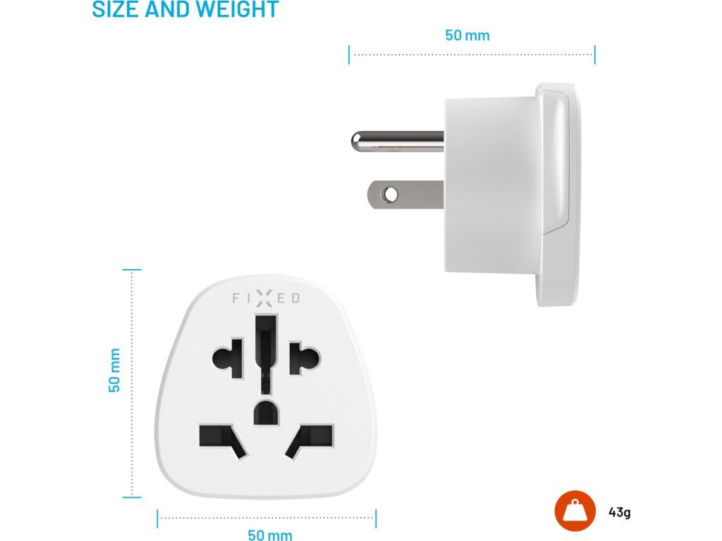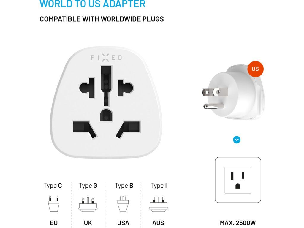 FIXED USA adaptér slouží jako ideální cestovní doplněk pro připojení nabíječek a jiné elektroniky do zásuvek ve Spojených státech, Japonsku a dalších zemích se zásuvkou typu B. Lze tak snadno každé zařízení přizpůsobit dané zásuvce, bez nutnosti pořizovat nové kabely či celé produkty. Cestovní adaptér má velice kompaktní rozměry a snadno ho přibalíte i do příručního zavazadla.