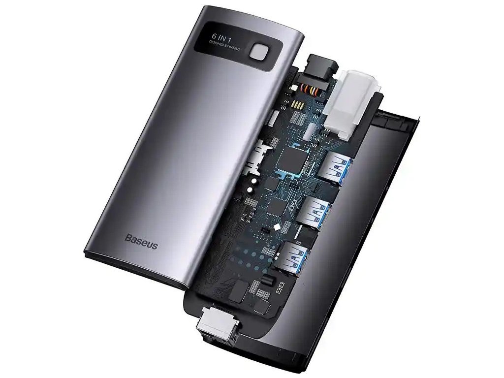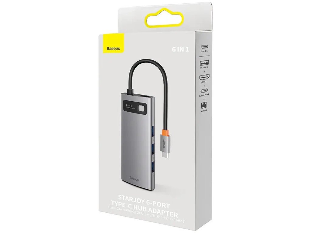Dokovací stanice 6v1 Baseus řady StarJoy, USB-C na 3x USB 3.0 + HDMI + USB-C PD + RJ45