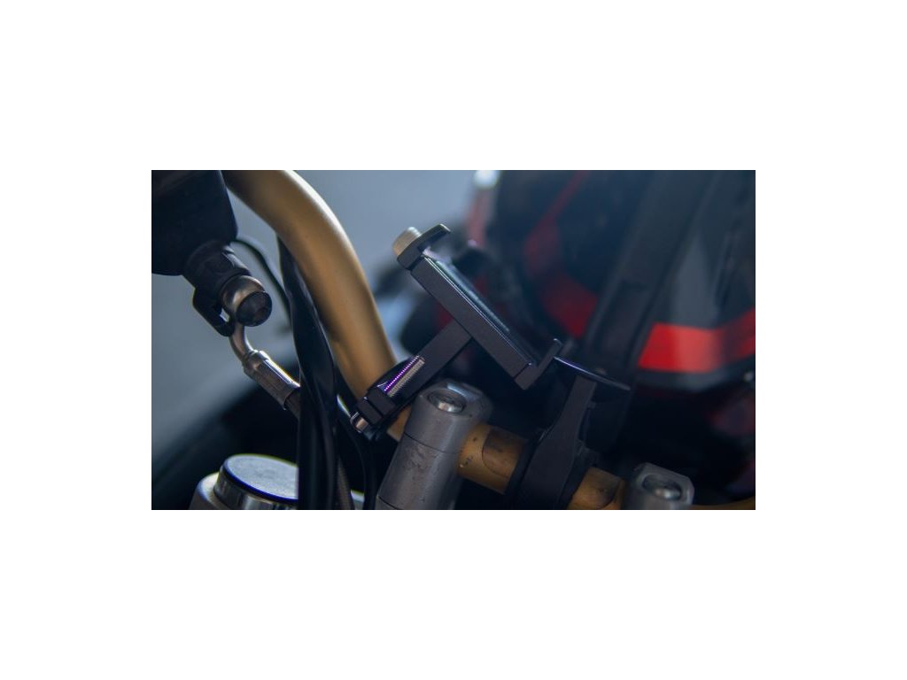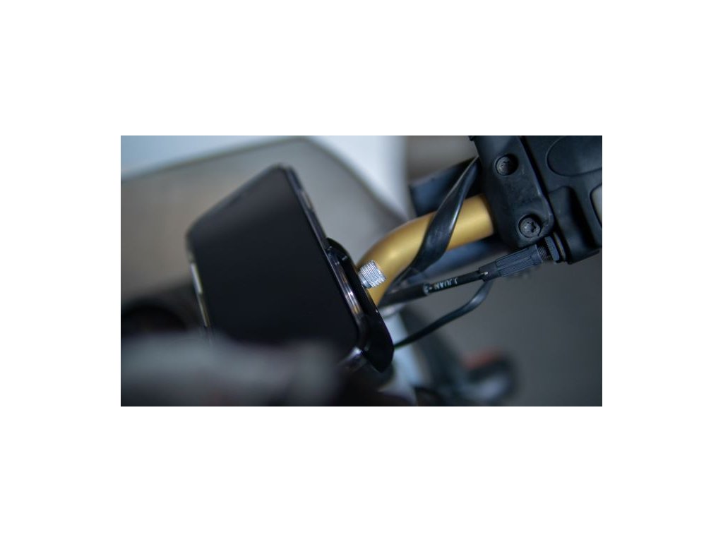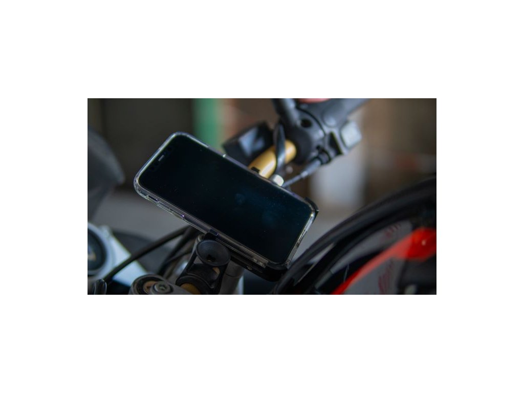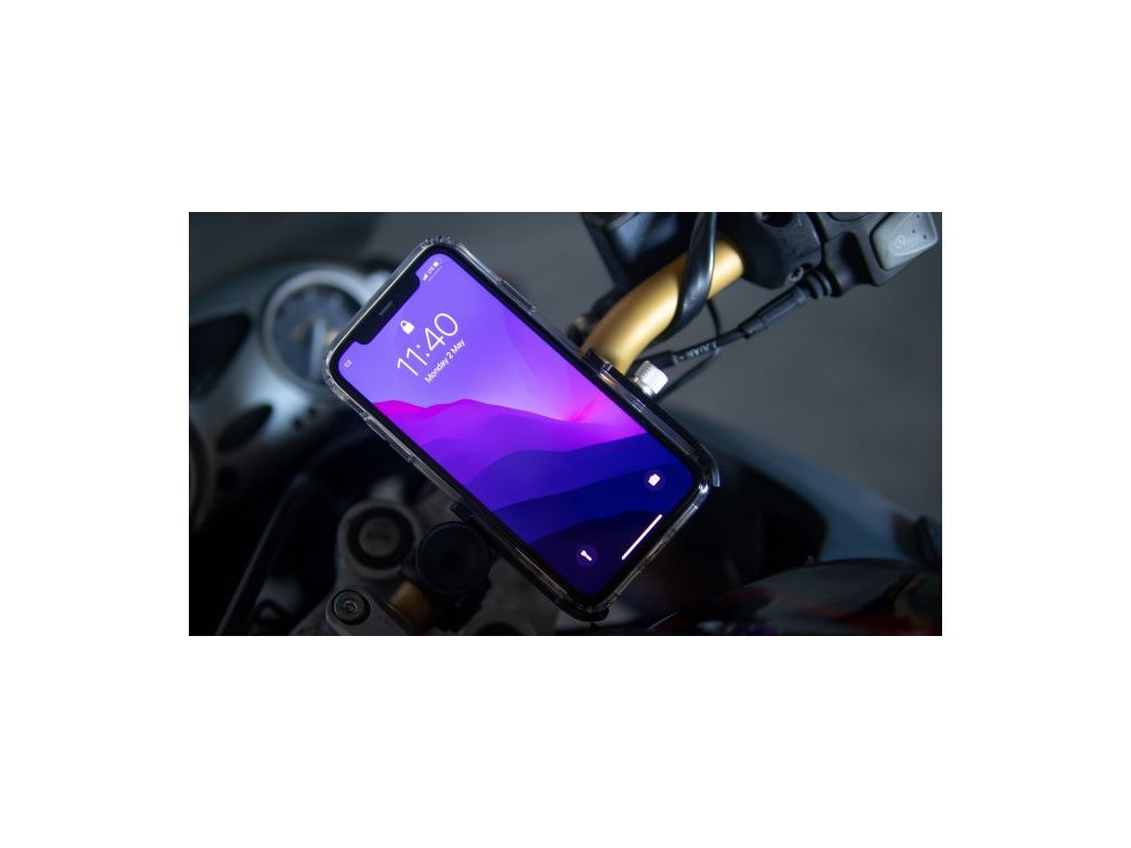 Sada rychloupínacího držáku s úchytem na řídítka a adhezivní základny Interphone QUIKLOX vám umožní mít váš mobilní telefon pohodlně a bezpečně po ruce během jízdy na motocyklu.