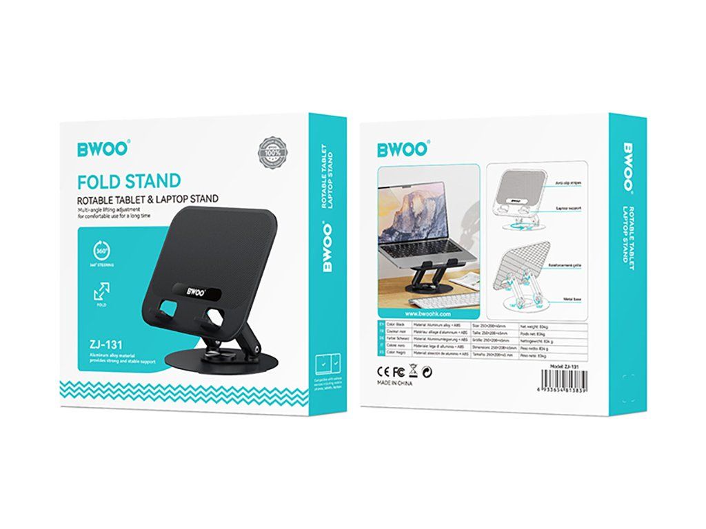 BWOO Otočný hliníkový skládací stojan pro tablet a notebook, černý