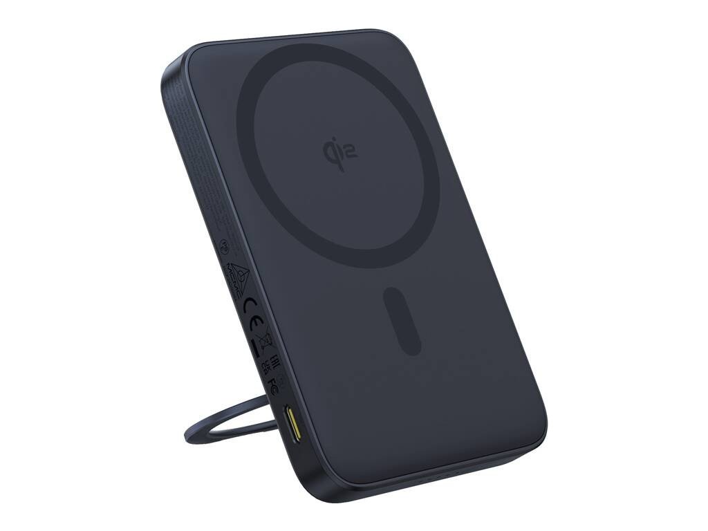 Díky technologii Qi2 umožňuje powerbanka bezdrátové nabíjení s výkonem až 15 W, což znamená pohodlí a absenci kabelů. Magnetický držák udržuje telefon během nabíjení stabilní a skládací stojánek umožňuje pohodlně umístit zařízení do různých úhlů - ideální pro videohovory nebo sledování filmů.