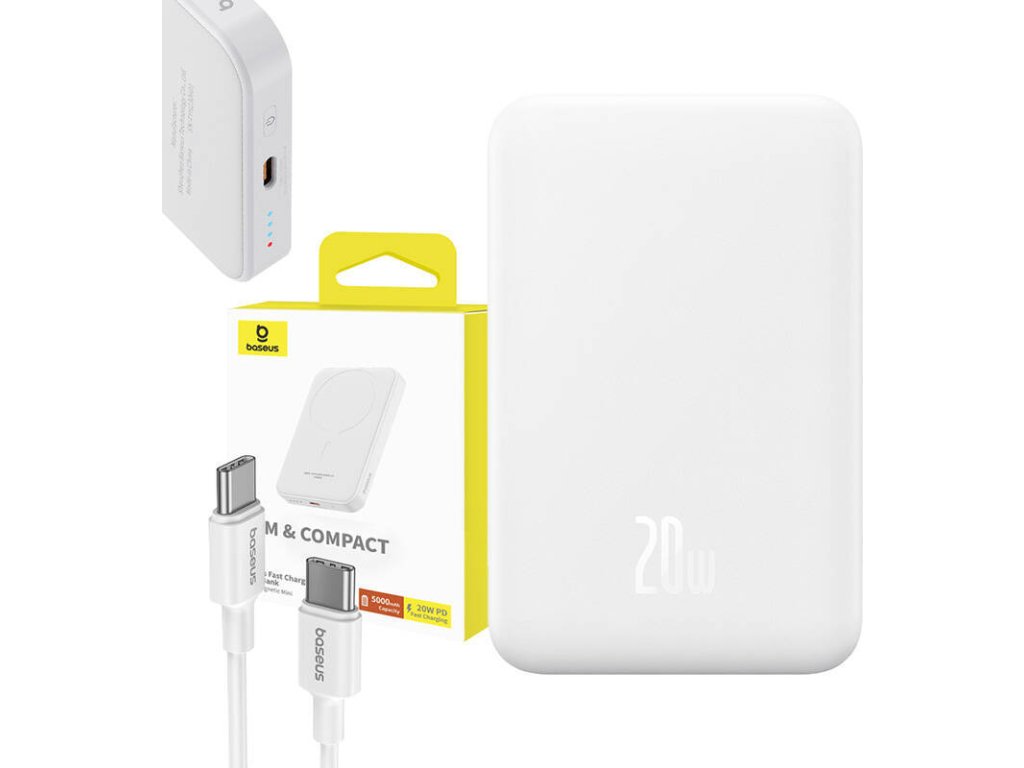 Magnetická Powerbanka MagSafe Mini Baseus 5000mAh, USB-C 20W (bílá)