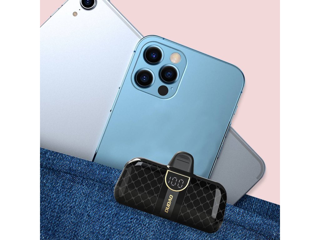 Mini powerbanka Dudao K20SL 5000mAh s konektory Lightning / USB-C - černá