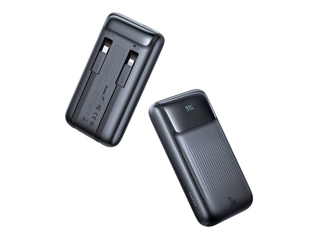 Powerbanka nabízí plných 33W nabíjecího výkonu, což vám umožní rychle napájet zařízení, jako je iPhone 15, které lze nabít na 60 % za pouhých 30 minut. Podpora rychlého nabíjení ve standardech PD 3.0, QC 3.0 a také nabíjecích protokolů Samsung SFC a Huawei SCP zajišťuje rychlé a efektivní nabíjení chytrých telefonů i tabletů, jako jsou iPad a Galaxy Tab. Vestavěné kabely poskytují pohodlí a umožňují nabíjet téměř jakékoli zařízení bez potřeby dalšího příslušenství.