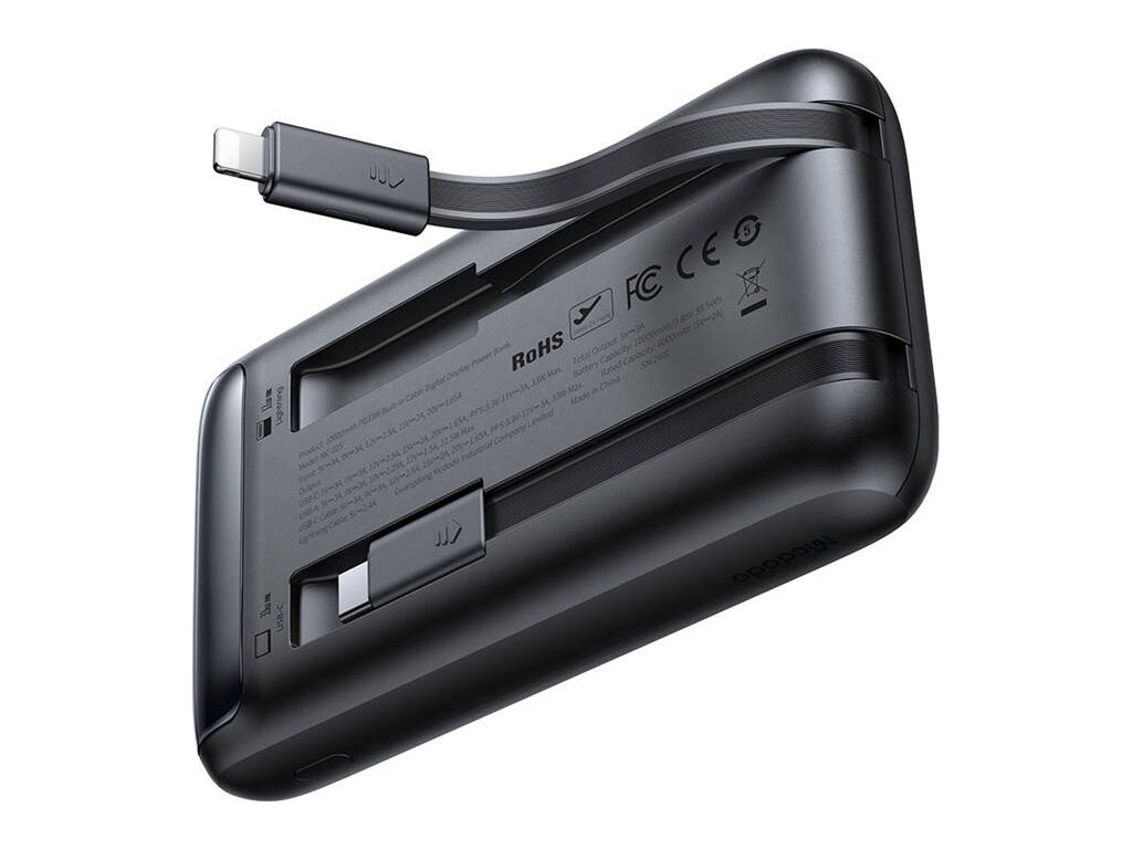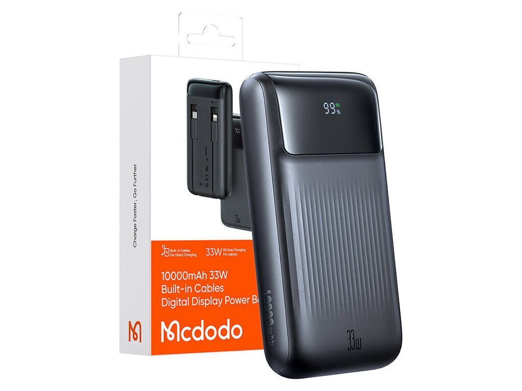 Mcdodo MC-0231 nabízí rychlé a bezpečné nabíjení pro vaše zařízení. Díky vestavěným kabelům USB-C a Lightning je powerbanka kompatibilní se zařízeními iOS i Android a nabízí všestranné použití bez nutnosti nosit s sebou další kabely. Díky kompaktnímu designu je ideální pro každodenní použití a zároveň nabízí špičkový výkon i pro zařízení jako MacBook v nouzových situacích. Můžete jej použít i na palubě letadla.