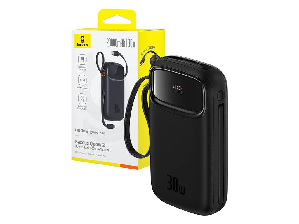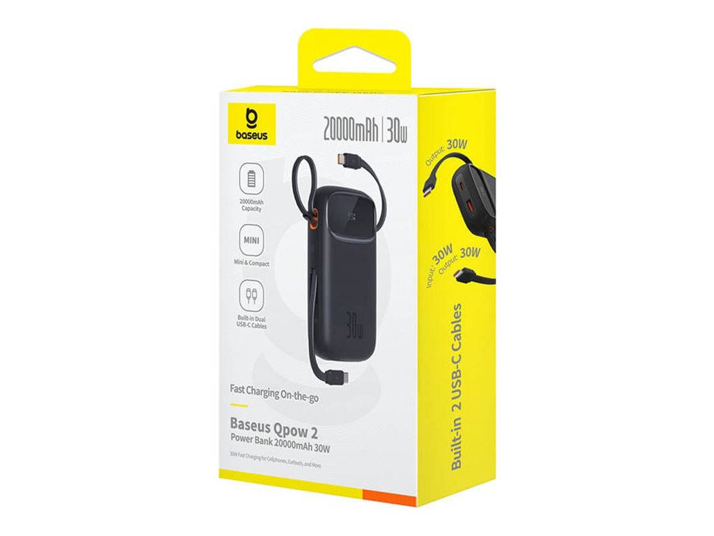 Powerbank Baseus QPow 2 20000mAh 30W 2xUSB-C kabel (black)