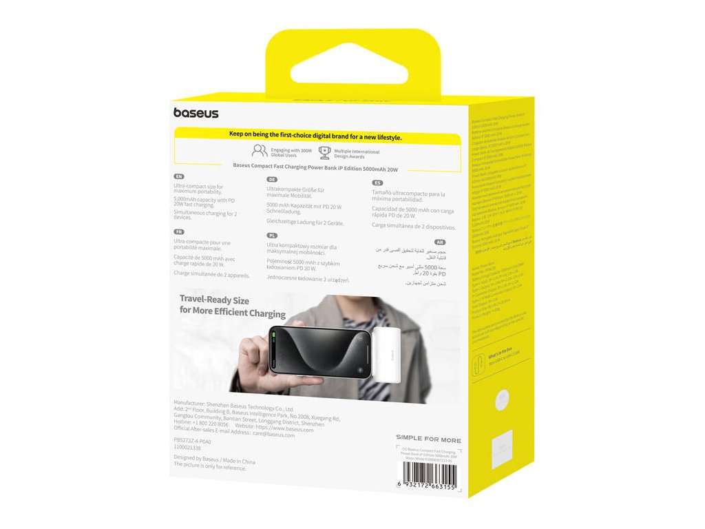 Don't let low power levels on your phone interrupt important moments! With the Baseus powerbank your devices will always be fully ready. With a capacity of 5000 mAh and 20W of power, it will be an indispensable source of energy in any situation. Equipped with a USB-C port, it offers multi-layered protection for all your devices.