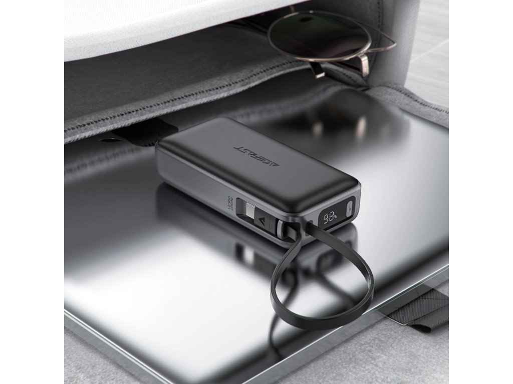 Powerbanka Acefast M7-10000 PD30W s vestavěným kabelem - černá