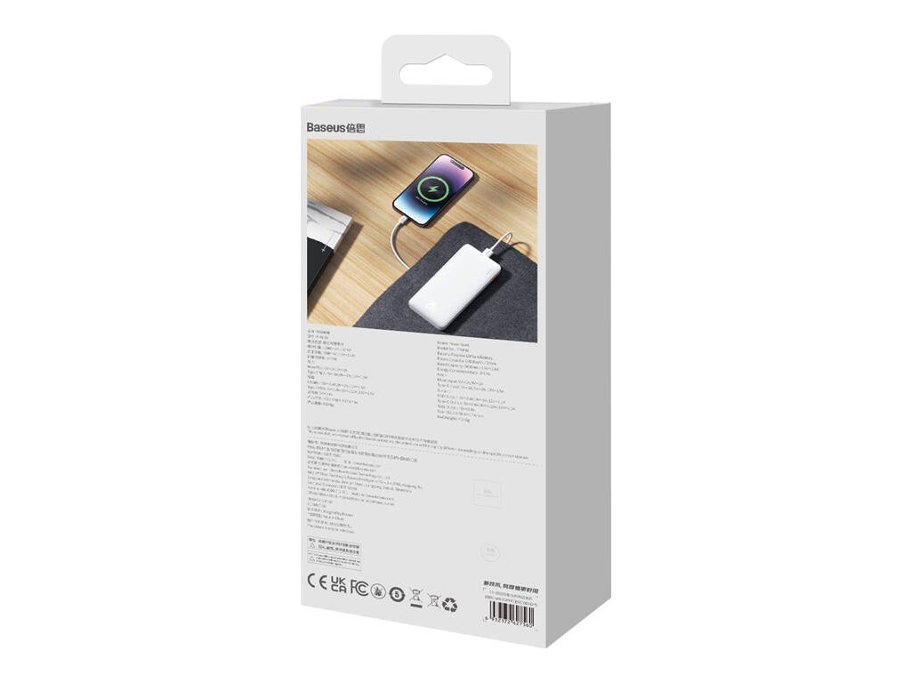Powerbanka Baseus EnerFill FM11 Ultra-Mini 10000 mAh 22,5W kompatibilní s MagSafe s kabelem Baseus Simple USB-C 20V/3A 30 cm - bílá Baseus EnerFill FM11 je kompaktní powerbanka s kapacitou 10 000 mAh…