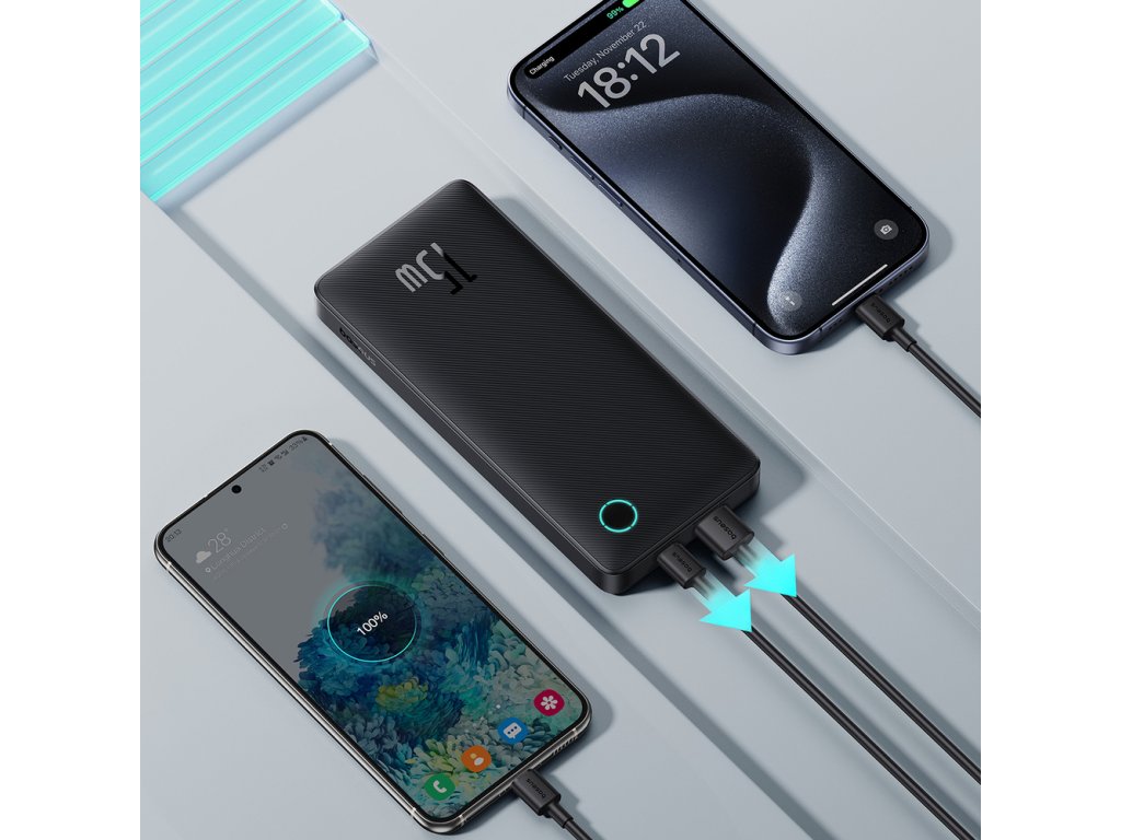 Powerbanka poskytuje výkon až 15 W, což umožňuje rychlejší a bezpečnější nabíjení chytrých telefonů a dalších zařízení bez ohledu na umístění a situaci.