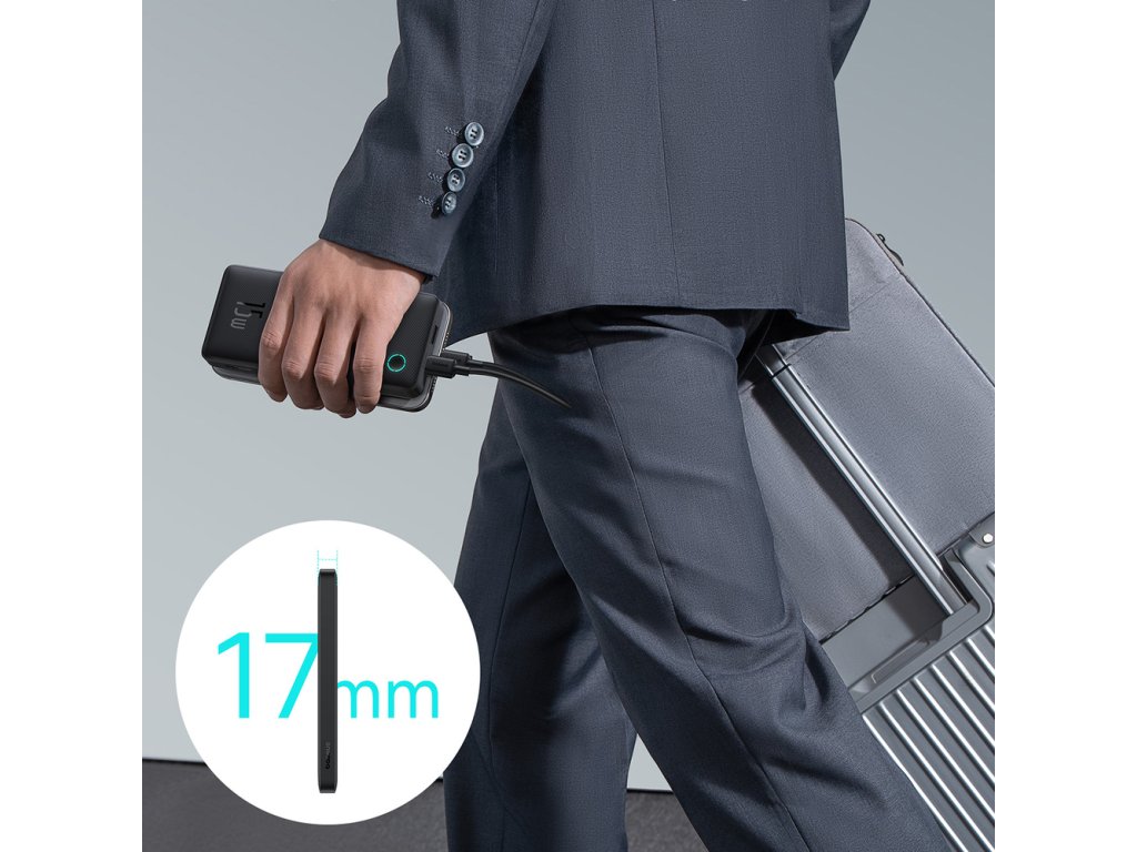 Powerbanka Baseus Airpow Lite se vyznačuje štíhlým designem s tloušťkou pouhých 17 mm, takže se snadno vejde do kapsy, tašky nebo batohu. Je to perfektní společník na každodenní cestování.
