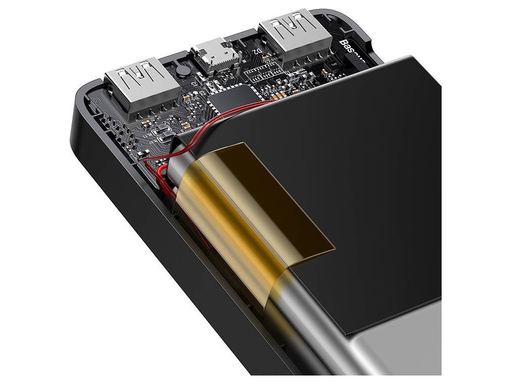 Špičková polymer-lithiová baterie zaručuje nejen rychlé, ale i bezpečné nabíjení. Baseus nabízí mimo jiné ochranu proti přepětí, nadproudu, přebití a zkratu. Powerbanka je také vybavena NTC teplotními čidly, která zabraňují přehřátí. Výrobek inteligentně detekuje připojená zařízení a přizpůsobuje jim nabíjecí proud, čímž je chrání před poškozením.