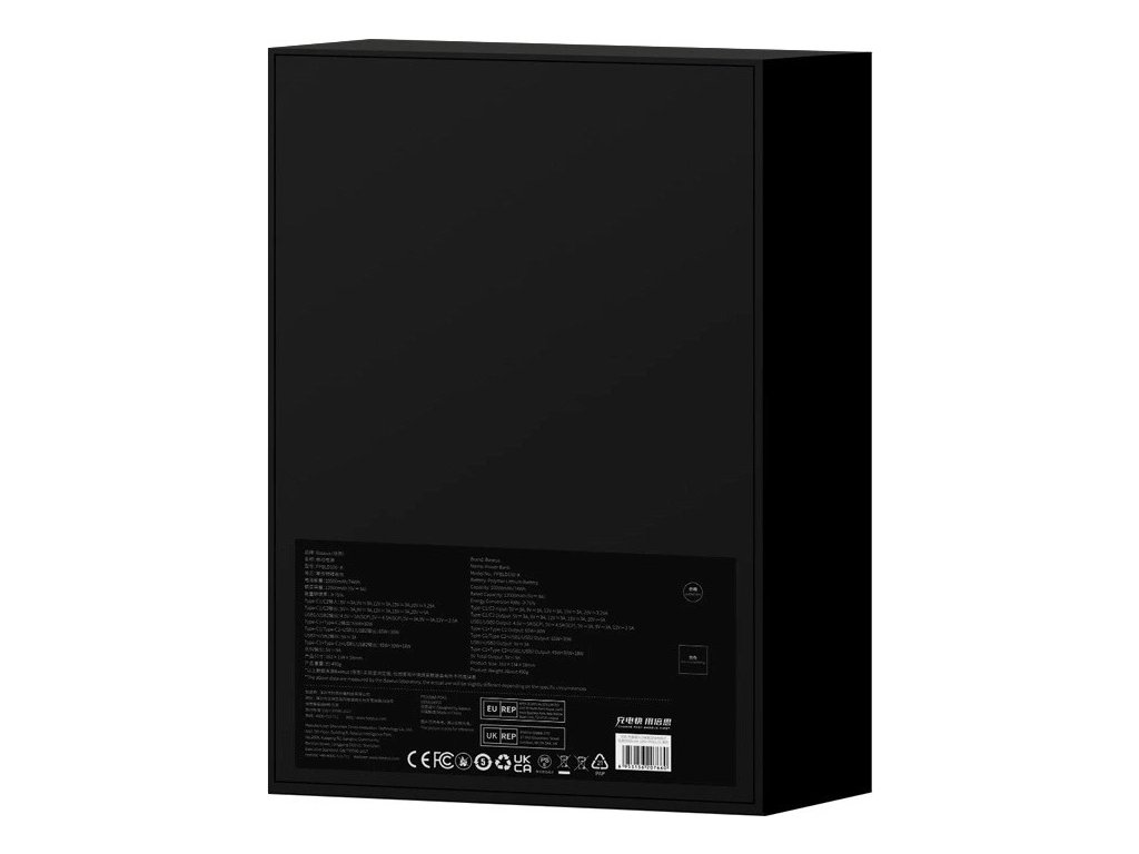 Moderní powerbanka je vybavena baterií s kapacitou 20000 mAh. Vyznačuje se vysokým nabíjecím výkonem (100 W) a má 4 porty - 2 porty USB-A a 2 porty USB-C. Na jejím těle se nachází displej, který zobrazuje úroveň zbývajícího nabití. Zařízení je velmi lehké a jeho tloušťka je menší než 18 mm, takže bude ideální na cesty. Zařízení má certifikaci RoHS, FCC a CE.