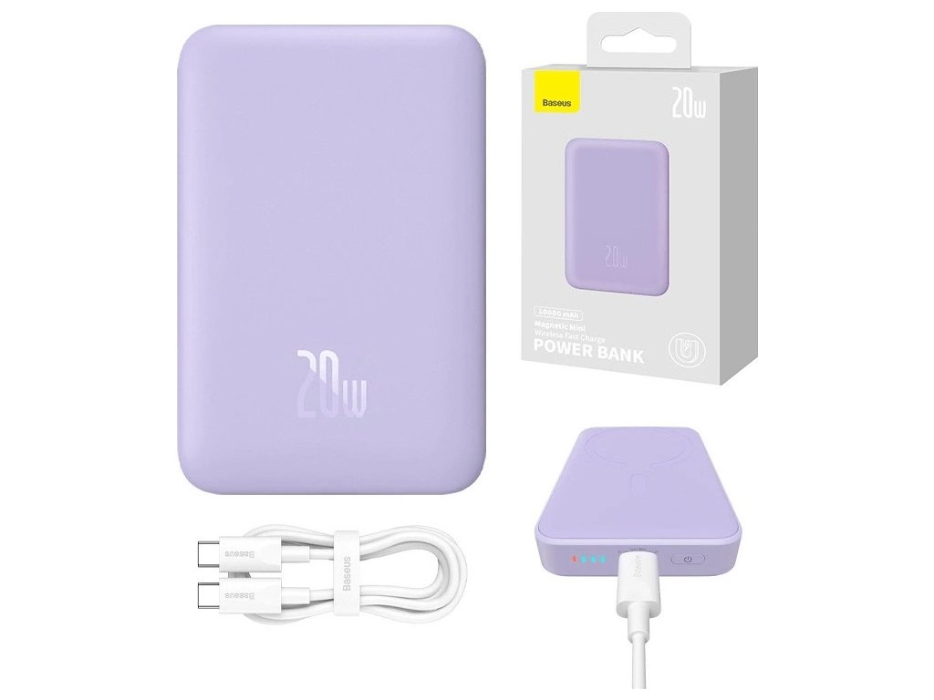 Powerbanka Baseus Magnetic Mini 10000mAh, USB-C 20W MagSafe (fialová)