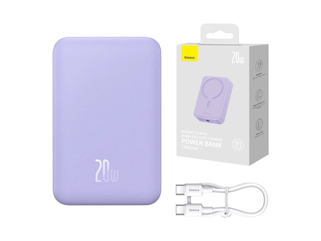 Powerbanka Baseus Magnetic Mini 20000mAh, USB-C 20W MagSafe (fialová)