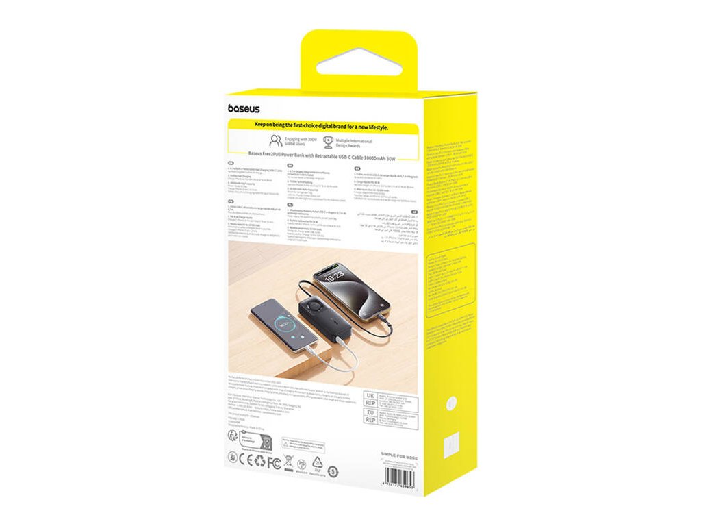 Nedovolte, aby vybitá baterie omezovala vaše schopnosti! Powerbanka Baseus Free2Pull s kapacitou 10 000 mAh nabízí až 30 wattů nabíjecího výkonu, což vám umožní rychle nabíjet vaše zařízení na cestách. Díky vysouvacímu kabelu USB-C můžete své zařízení snadno připojit, aniž byste museli nosit další kabely. Jeho široká kompatibilita znamená, že jej můžete úspěšně použít k nabíjení téměř všech vašich zařízení.