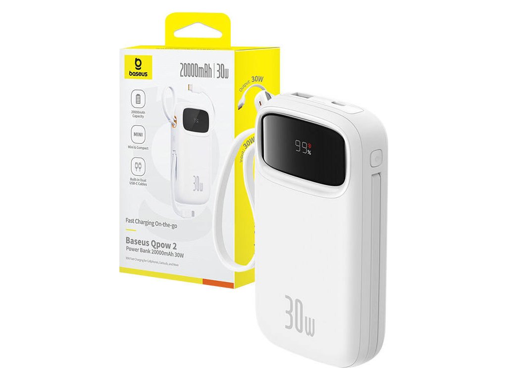 Powerbanka Baseus QPow 2 20000mAh 30W 2xUSB-C kabel (bílá)