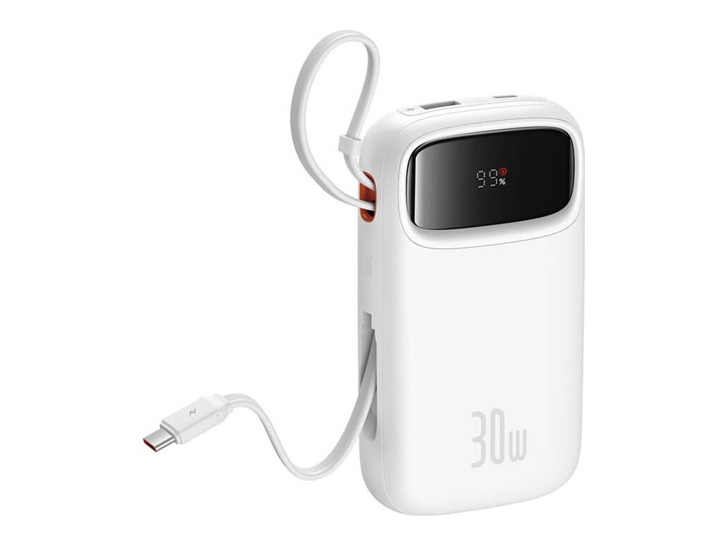 Zapomeňte na těžké a objemné powerbanky! Baseus QPow 2 se vyznačuje nízkou hmotností (360 g), kompaktním designem, který se snadno vejde do každé tašky nebo batohu. Díky pohodlné rukojeti jej můžete mít vždy po ruce a integrovaný USB-C kabel eliminuje potřebu přenášet další kabely.