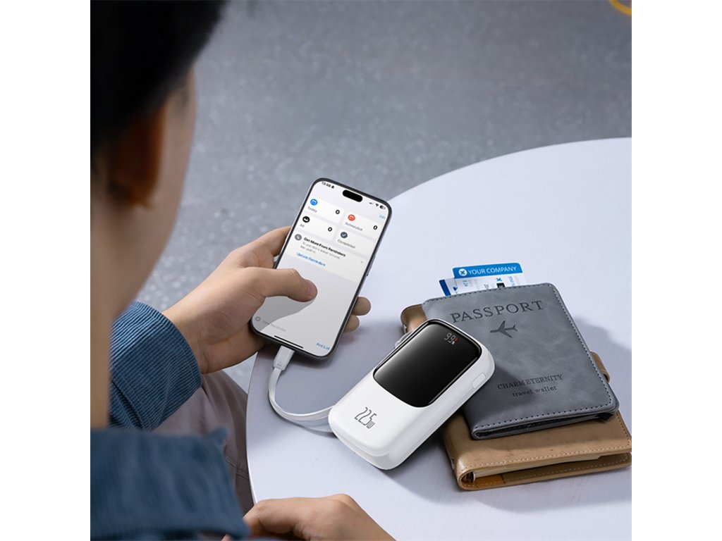 - Vysoká kapacita: 10 000 mAh umožňuje opakované nabíjení chytrých telefonů, tabletů a dalších mobilních zařízení, což z ní činí ideální řešení pro dlouhé cesty.