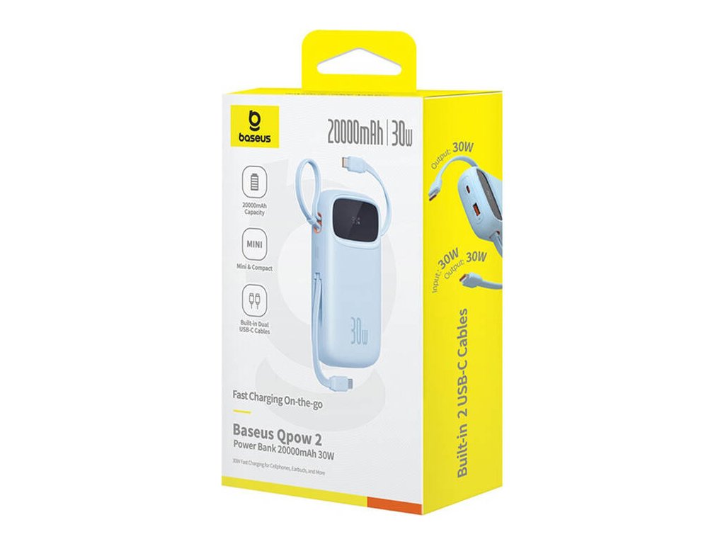 Powerbanka Baseus QPow2 20000mAh 30W 2xUSB-C kabel (modrá)