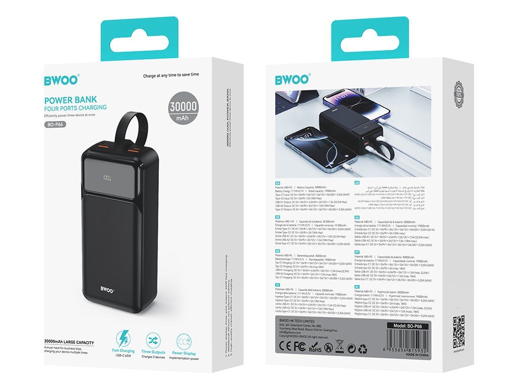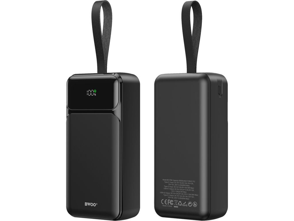Powerbanka BWOO 65W 30000 mAh 2x USB-A, 1 x USB-C s LCD displejem, černá