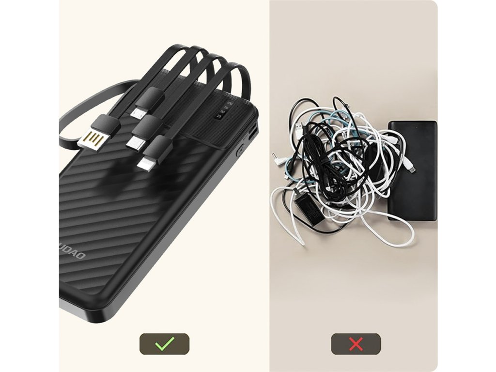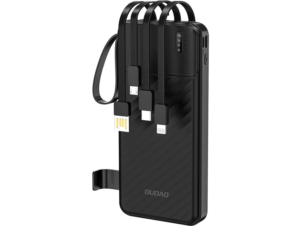 Powerbanka Dudao K11 10 000 mAh s vestavěnými kabely - černá