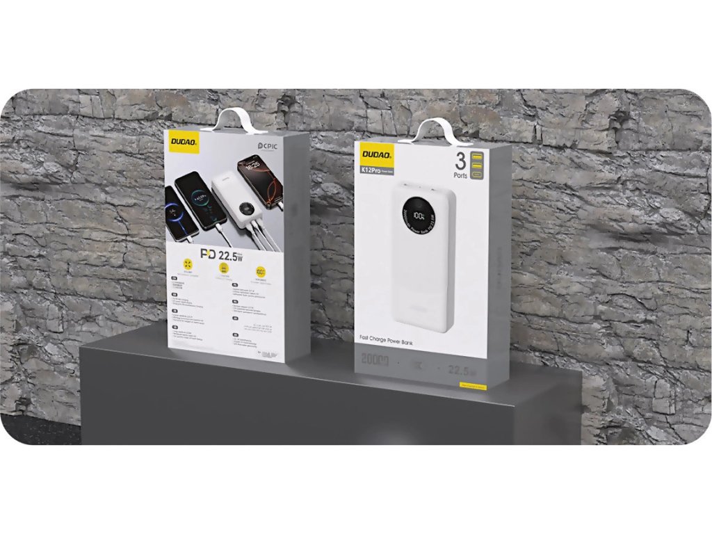 - Pevná konstrukce: Powerbanka Dudao K12Pro je vyrobena z odolných materiálů, což zajišťuje bezpečnost při používání a chrání zařízení před poškozením.