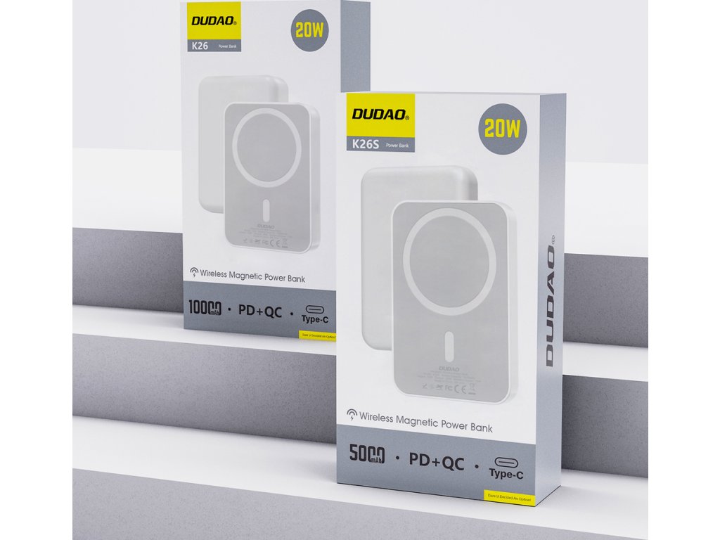Objevte výjimečný výkon a pohodlí s powerbankou Dudao K26 – perfektním řešením pro každého, kdo potřebuje spolehlivý zdroj energie na cestách. S kapacitou 10 000 mAh a maximálním výkonem 20 W můžete nabíjet svá zařízení rychleji a efektivněji. Podpora protokolů Power Delivery a Quick Charge zajišťuje bleskově rychlé nabíjení a kompatibilita s MagSafe umožňuje bezdrátové nabíjení až do 15 W. Tato powerbanka, vybavená dvěma porty USB-A a USB-C, zaručuje všestrannost a univerzálnost. Kompaktní, lehká a stylová – perfektní společník pro každodenní použití.