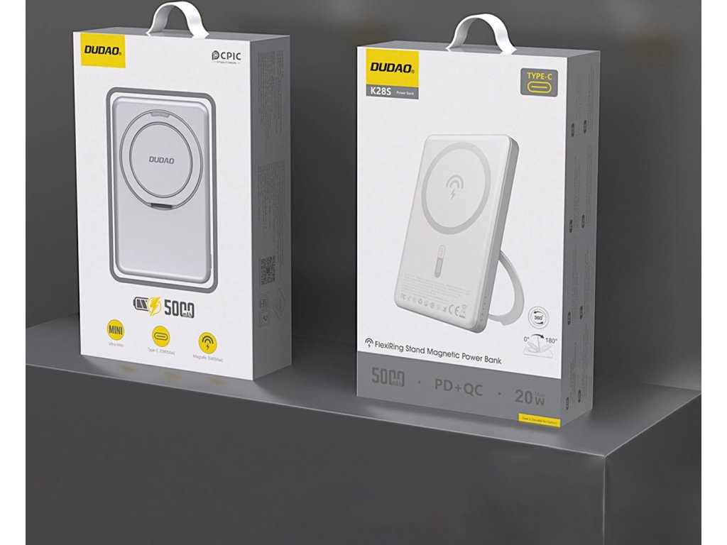 Powerbanka Dudao K28S 20W PD 5000mAh je elegantní a funkční nabíječka, která poskytuje nepřetržitou energii vašim mobilním zařízením. Díky technologii 20W Power Delivery a kompatibilitě s MagSafe je perfektní volbou pro lidi, kteří si cení rychlosti nabíjení a pohodlí při používání. Díky vestavěnému stojánku umožňuje tato powerbanka nejen pohodlné nabíjení, ale i používání zařízení během nabíjení. Ať už cestujete, v práci nebo doma, Dudao K28S je spolehlivým řešením pro nabíjení chytrých telefonů, tabletů a dalších zařízení s možností bezdrátového nabíjení. Naplňte si každý den energií s powerbankou Dudao K28S!