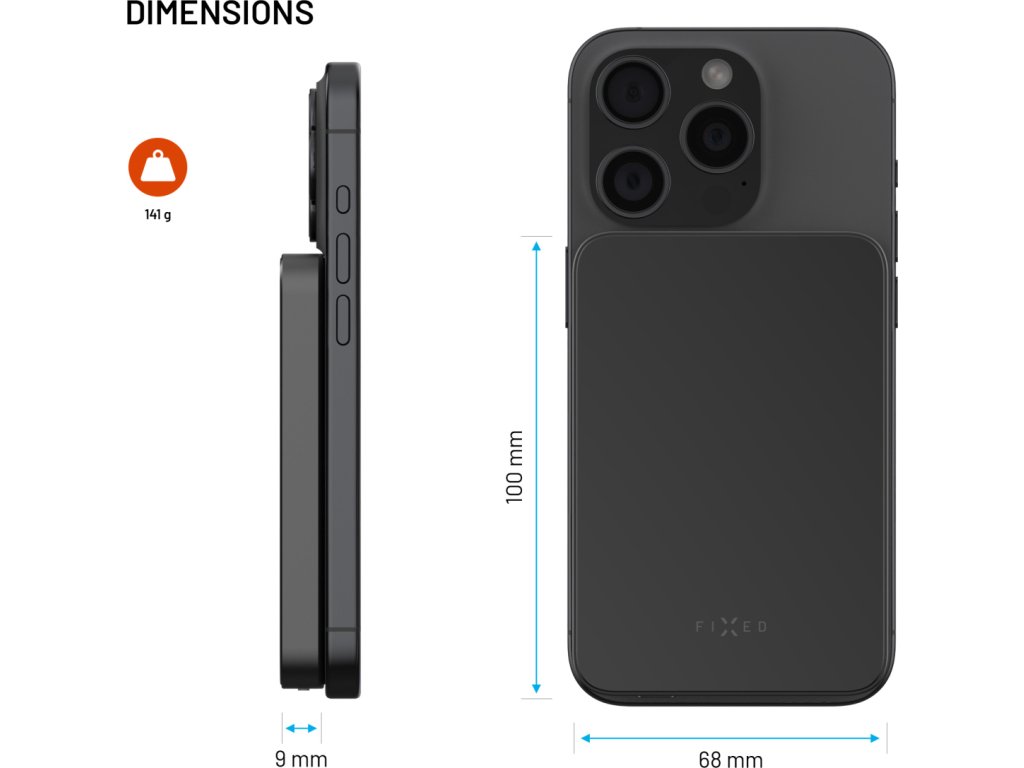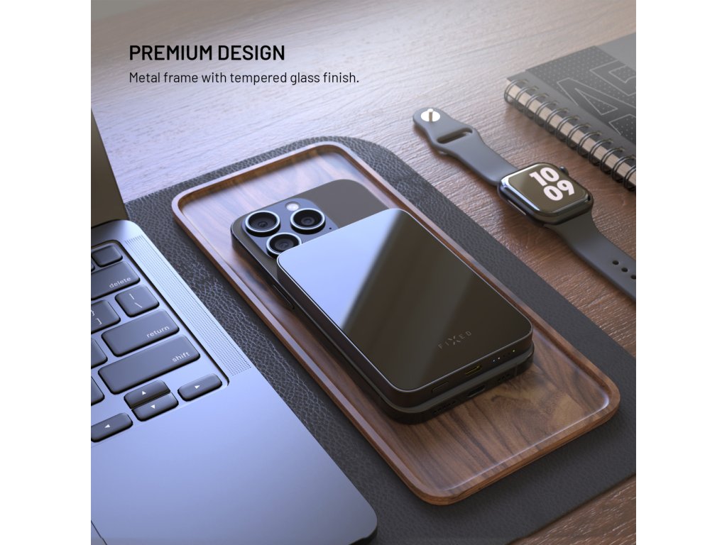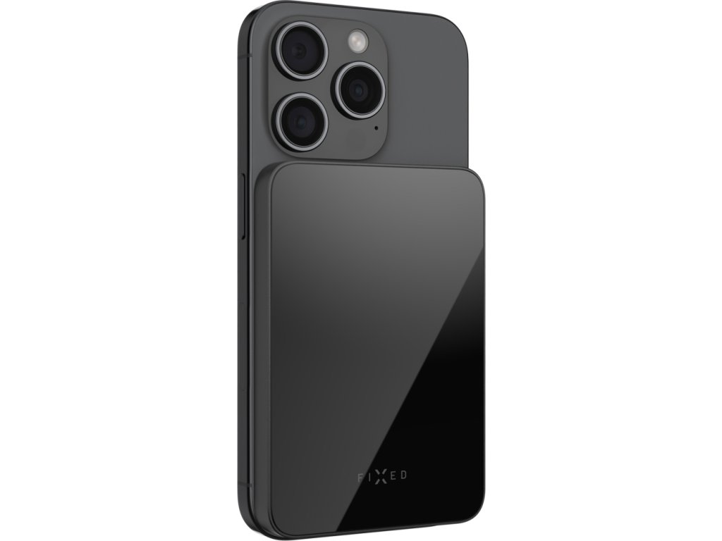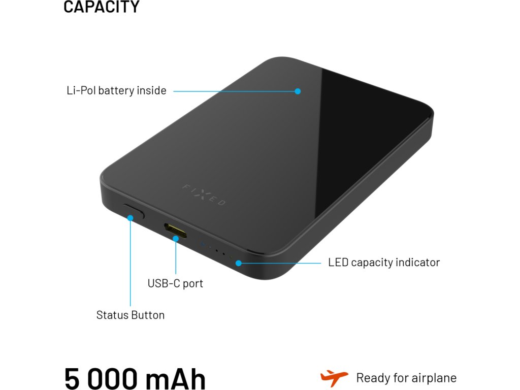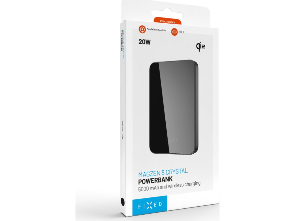 Powerbanka FIXED MagZen 5 Crystal s bezdrátovým nabíjením se standardem Qi2 a podporou MagSafe, 5 000 mAh, černá