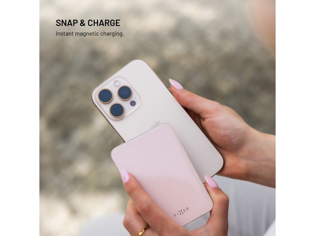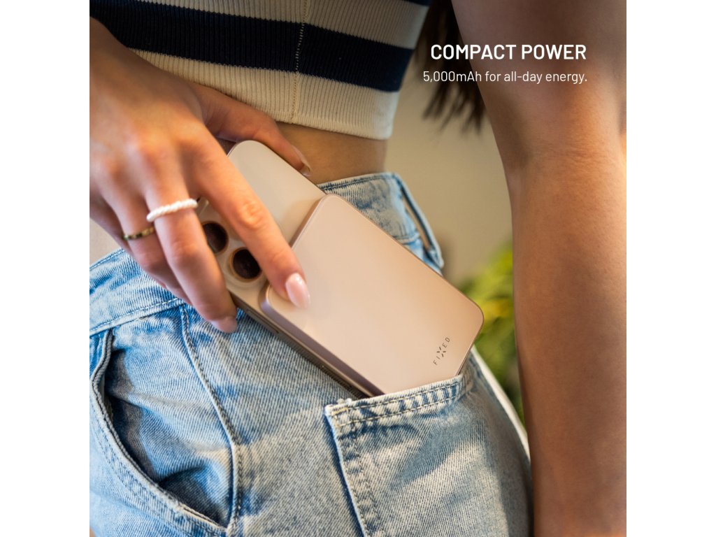 Powerbanka FIXED MagZen 5 Crystal s kapacitou 5 000 mAh a certifikací Qi2 nabízí rychlé a efektivní nabíjení všech telefonů podporujících tuto technologii. Díky integrovaným MagSafe magnetům se snadno přichytí na zadní stranu iPhonů 12 a novějších, případně na telefony s kompatibilním MagSafe krytem. Po přichycení se nabíjení automaticky spustí výkonem až 15W. Pokud vaše zařízení MagSafe nepodporuje, lze powerbanku využít i jako klasickou bezdrátovou nabíjecí podložku. Powerbanka podporuje i rychlé nabíjení přes USB-C port s výkonem až 20W. Lze tak nabíjet dvě zařízení zároveň – bezdrátově výkonem 5W a přes USB-C port výkonem 10W. Kapacita 5 000 mAh vystačí na jedno až dvě nabití telefonu a stav kapacity přehledně zobrazují čtyři LED diody. Tělo kombinuje kovový rám a tvrzené sklo s matnou úpravou na nabíjecí straně pro ochranu telefonu před poškrábáním. Díky tenkému provedení pouhých 9,4 mm splyne s telefonem a pohodlně se vejde do kapsy. FIXED MagZen 5 Crystal je lehké, stylové a praktické řešení pro každodenní dobíjení na cestách.