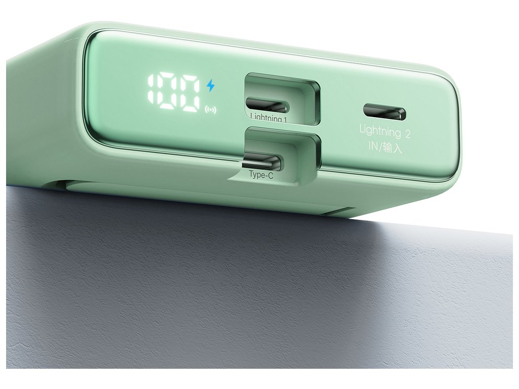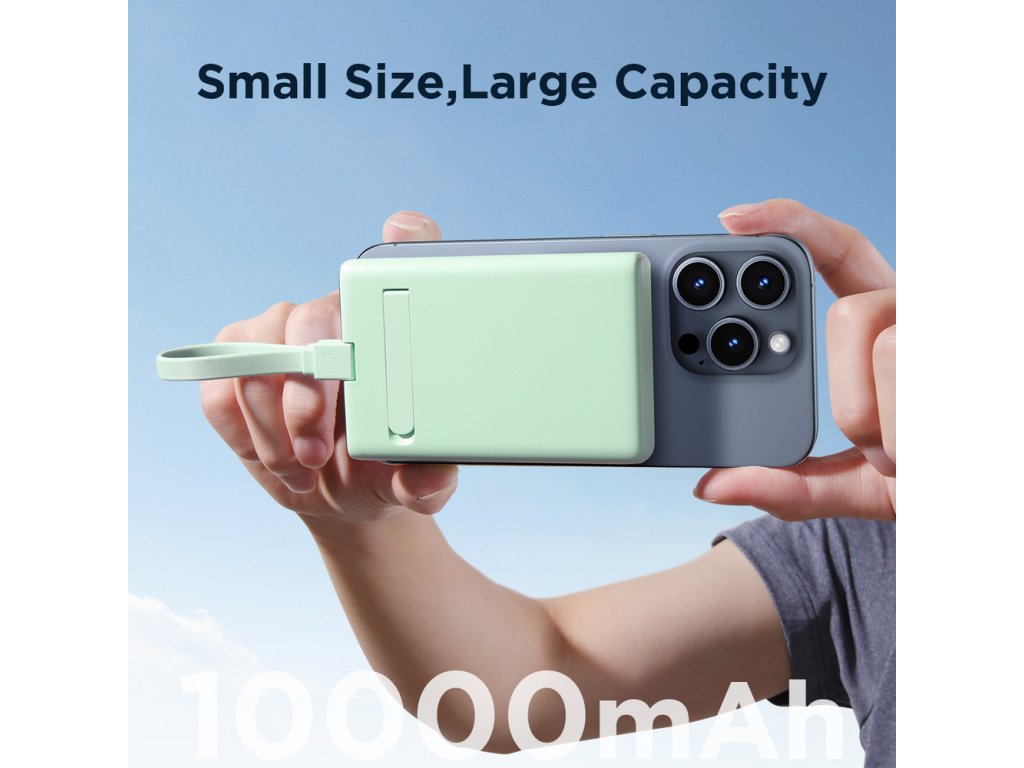 Magnetická powerbanka Joyroom JR-PBM01 s kapacitou 10 000 mAh a výkonem až 20 W, se stojánkem + kabel Lightning - USB-C - zelená