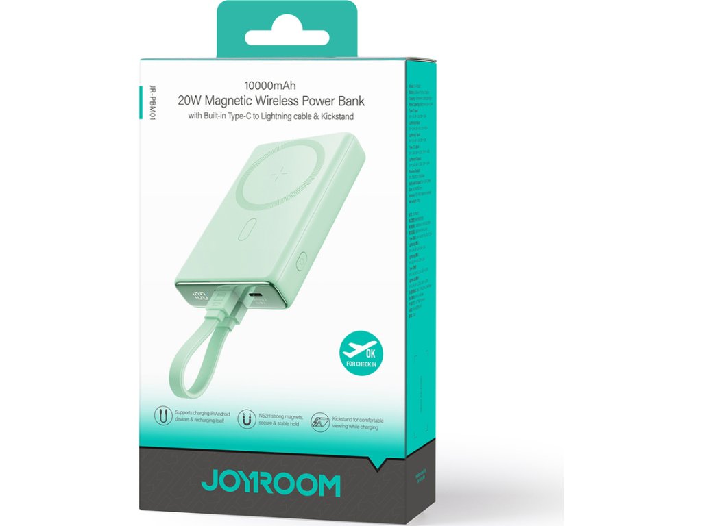 Magnetická powerbanka Joyroom JR-PBM01 zaručuje, že váš telefon nebo bezdrátová sluchátka zůstanou nabitá, když je nejvíce potřebujete. S maximálním výstupním výkonem 20 W s podporou technologie Power Delivery tato powerbanka poskytuje rychlé nabíjení, které vám umožní obnovit energii až třikrát rychleji než standardní powerbanky. Skládací stojan a odnímatelný kabel zajišťují pohodlné používání za všech podmínek. A inteligentní systém regulace teploty zajišťuje bezpečnost zařízení i uživatele.