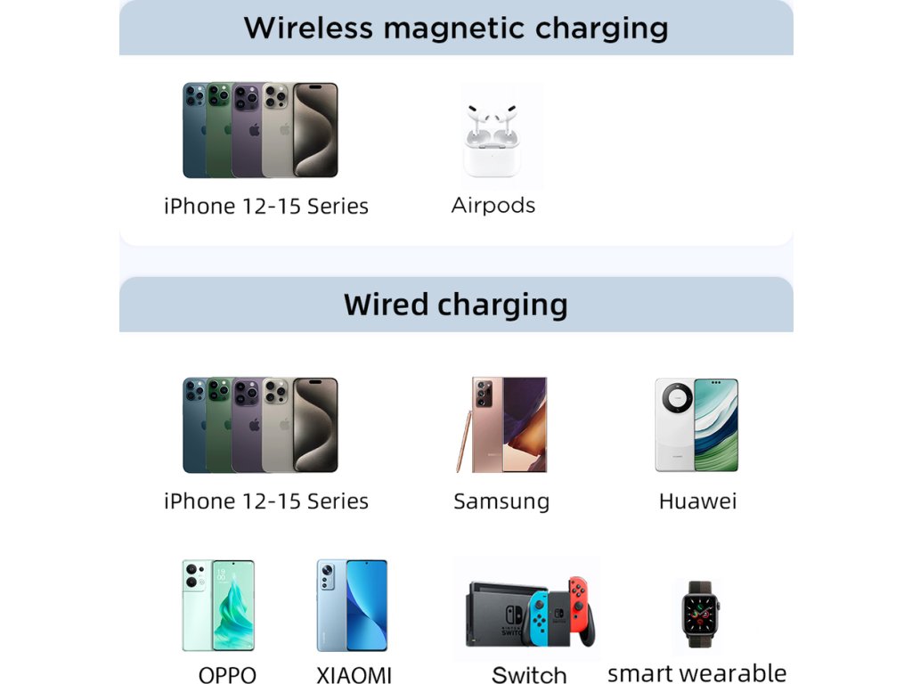 - Bezpečně stabilizuje váš telefon během bezdrátového nabíjení . Powerbanka má vestavěné magnety N52H.