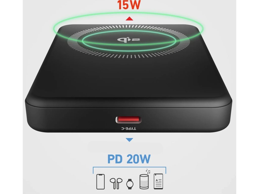 - Rychlé nabíjení 20W Power Delivery (PD): Port USB-C umožňuje rychlé nabíjení smartphonu nebo jiných zařízení.