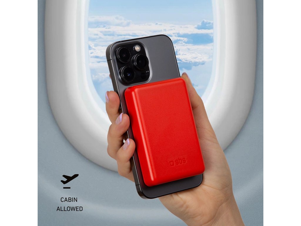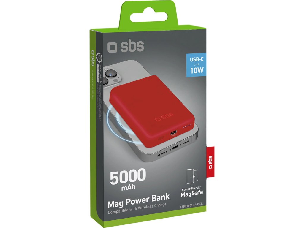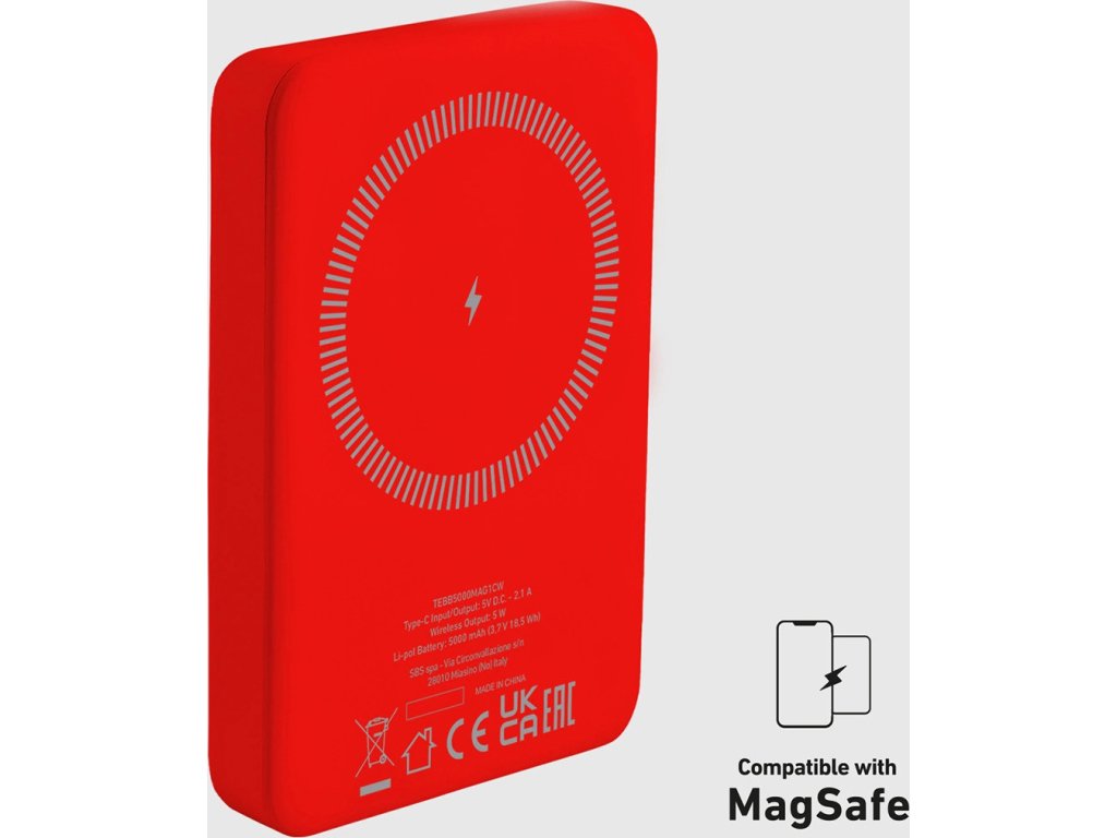 Powerbanka SBS TEBB5000MAG1CR 5000 mAh kompatibilní s MagSafe - červená