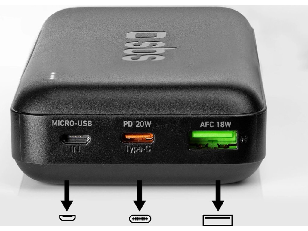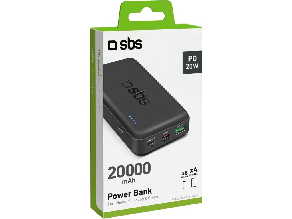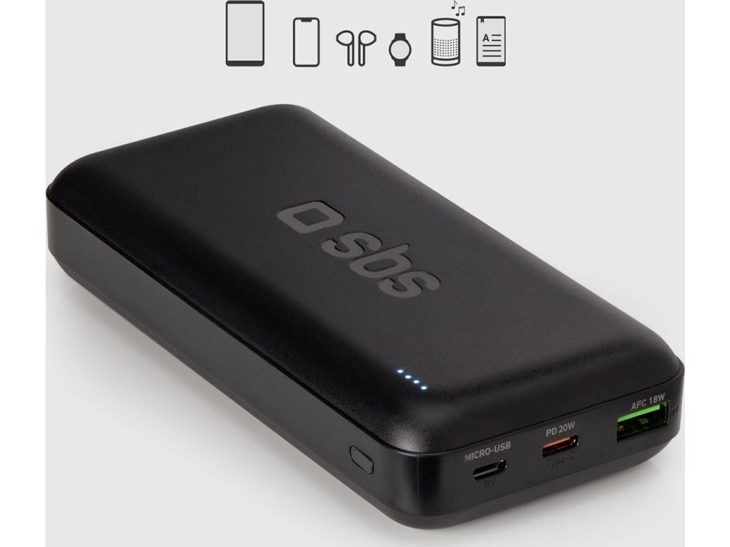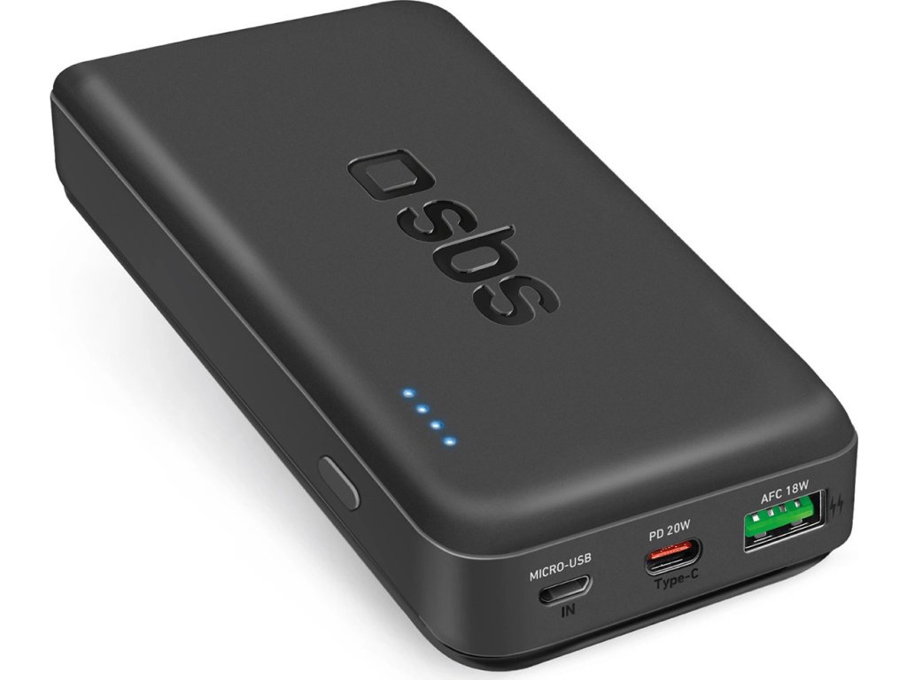 Powerbanka SBS TTBB20000PD20K 20000 mAh 20W PD USB-C, USB-A, Micro-USB - černá