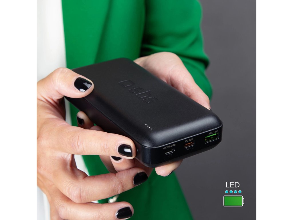 Díky možnosti vzít si powerbanku na palubu letadla a LED indikátoru monitorujícímu úroveň nabití je SBS TTBB20000PD20K nenahraditelným partnerem na každé cestě.