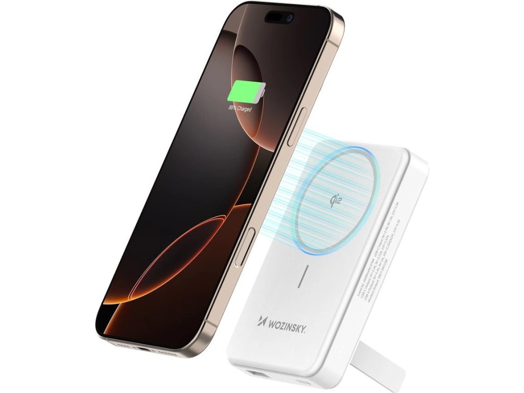 Powerbanka Wozinsky podporuje moderní indukční nabíjení Qi2.0, což znamená, že můžete nabíjet telefon bez kabelů – stačí zařízení položit na magnetický povrch.