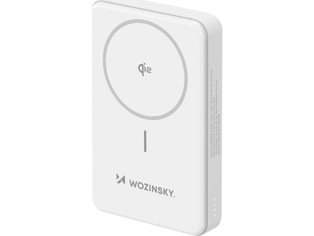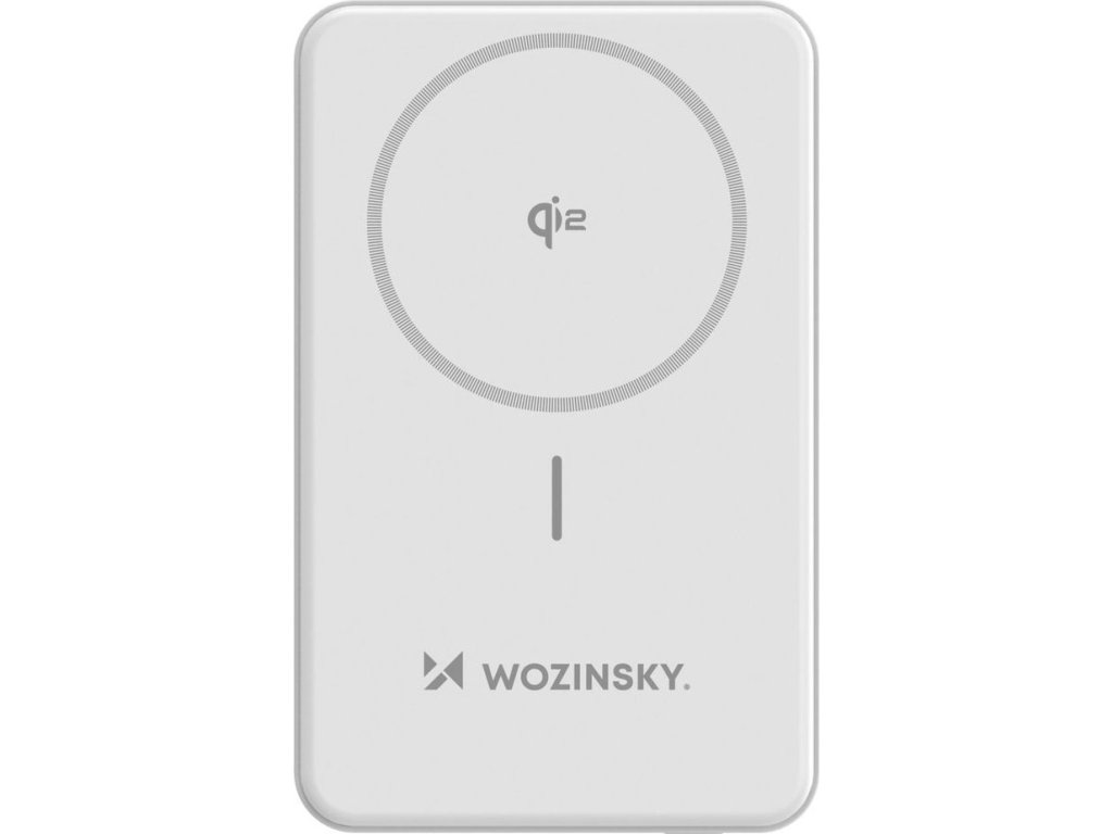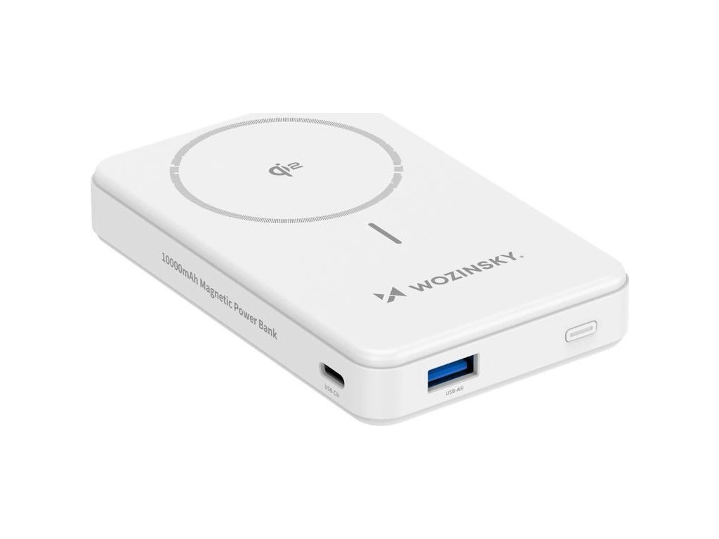 Powerbanka Wozinsky 22,5W PD Qi2 10000 mAh, se stojánkem, 1x USB-A, 1x USB-C - bílá